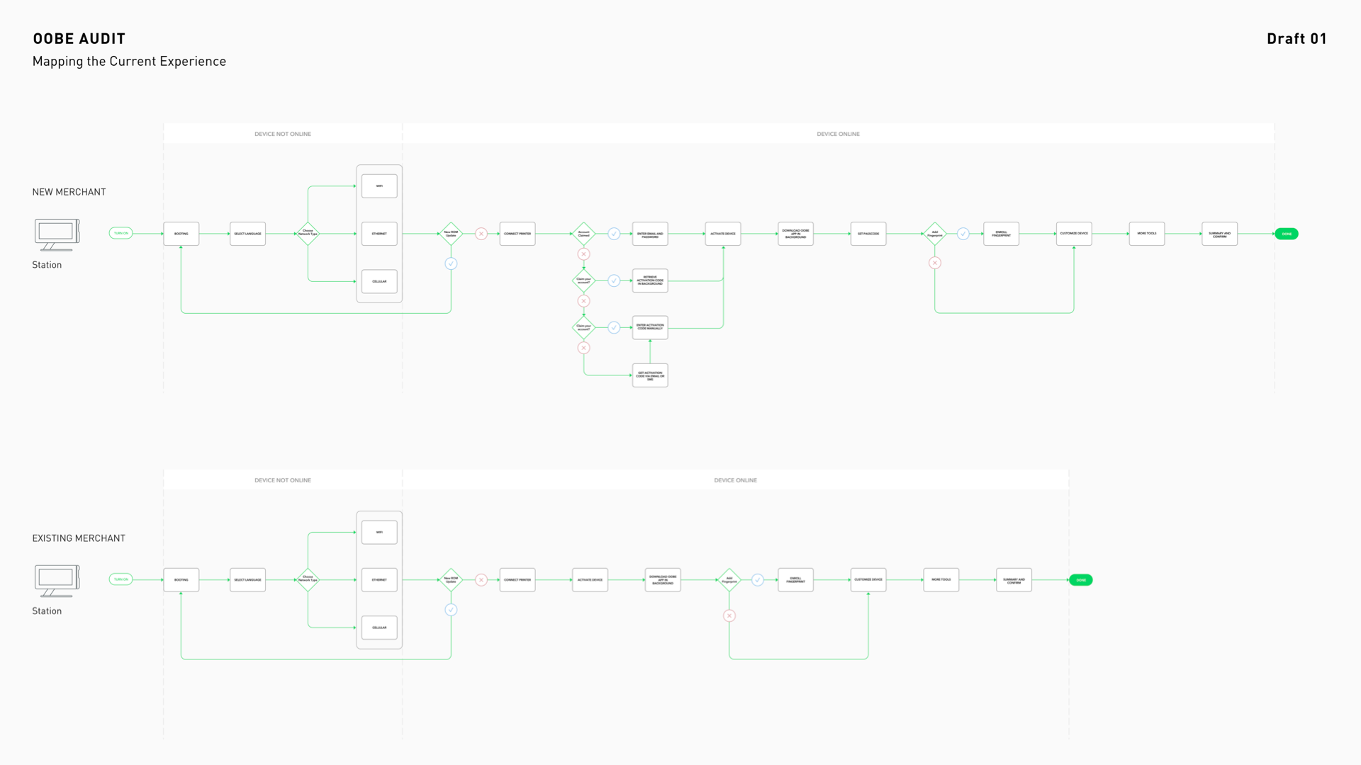 This allowed us to look at a broader picture of the onboarding journey. From touch-points such as emails, which were not user-friendly, mobile-friendly and simply off brand, the Clover web-dashboard, a web portal where you can set up things like inventory, employees, etc. before your device has even arrived, the physical unboxing and installation, along with the actual device setup.